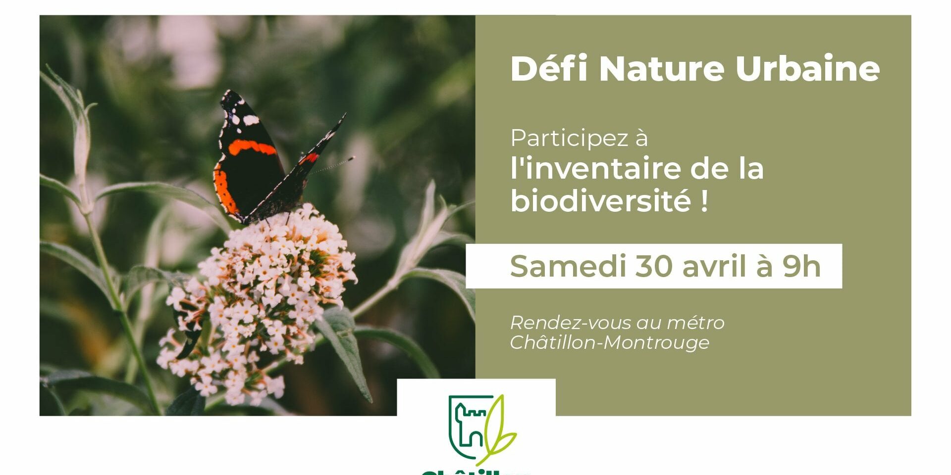 Le Défi Nature Urbaine à Châtillon-Montrouge, pour découvrir la biodiversité dans nos quartiers va permettre de réaliser un inventaire d’une partie de la coulée verte du Sud Parisien. Il s’agit de contribuer à l’inventaire de la biodiversité en Île-de-France, à l’occasion du City Nature Challenge 2022 organisé par Sorbonne Université et Université de Paris.